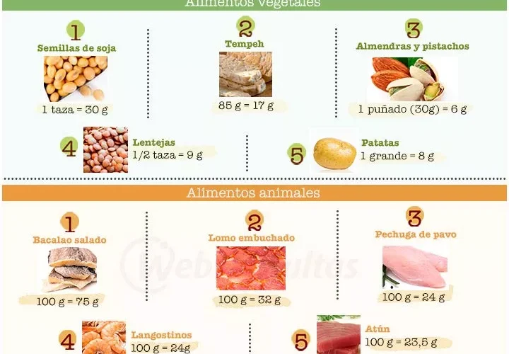 ¿Cuáles son los diferentes tipos de proteínas que se encuentran en los alimentos?